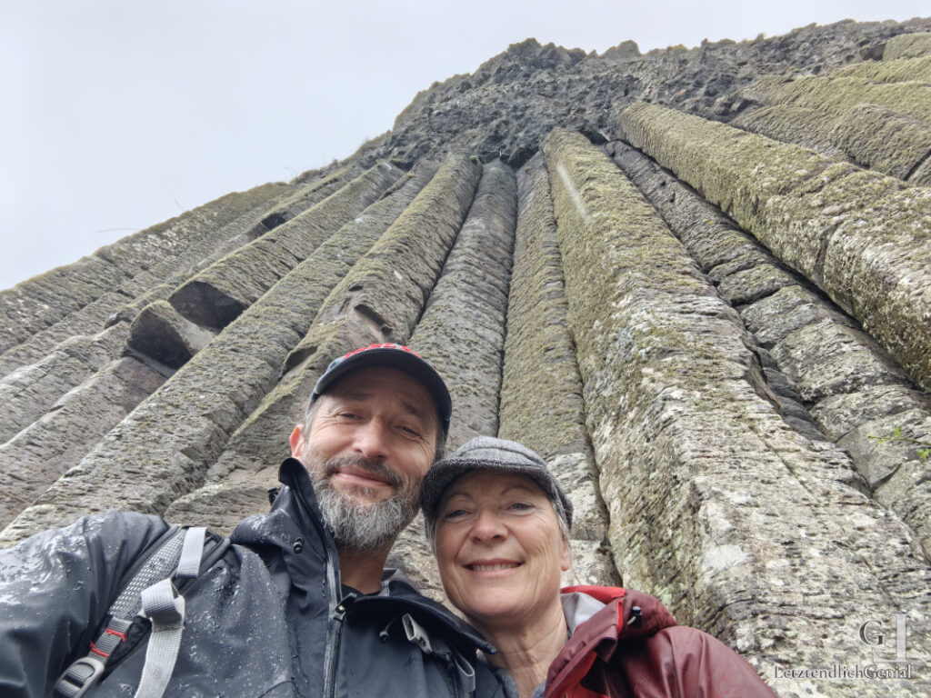 Der einsetzende Regen und die 160 Stufen des Sheep-Ways sorgen dafür, dass wir den oberen Küstenweg fast für uns alleine haben. Zudem gelingen Fotos von oben vom fast leeren ‚Damm der Giganten‘ *einfach-gigantisch*